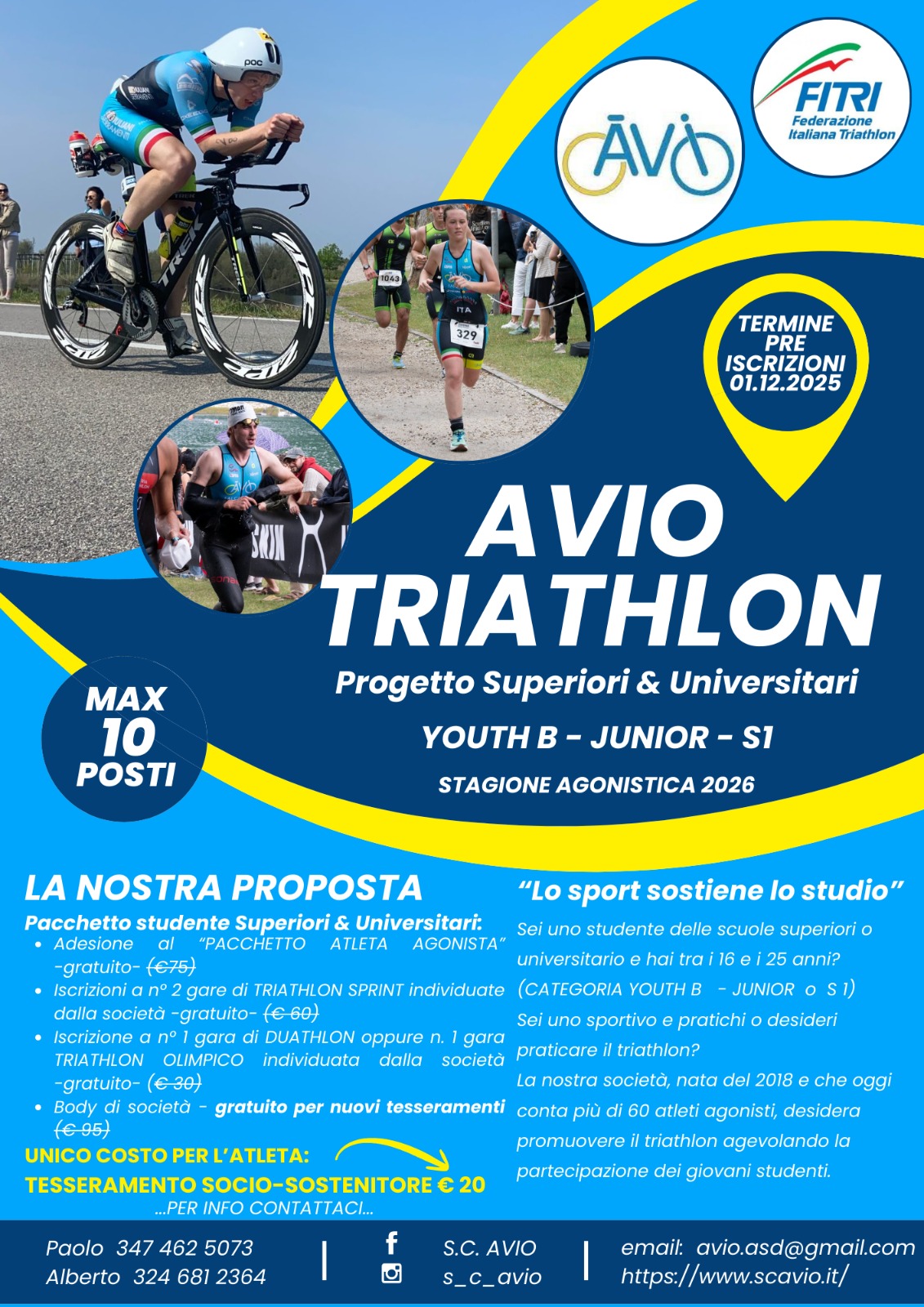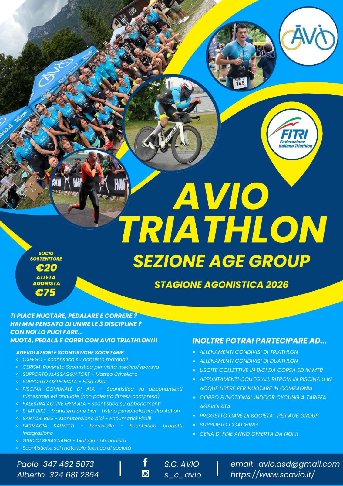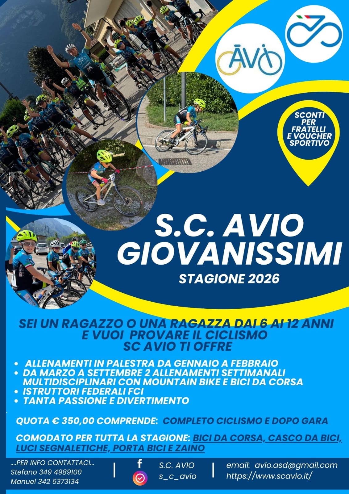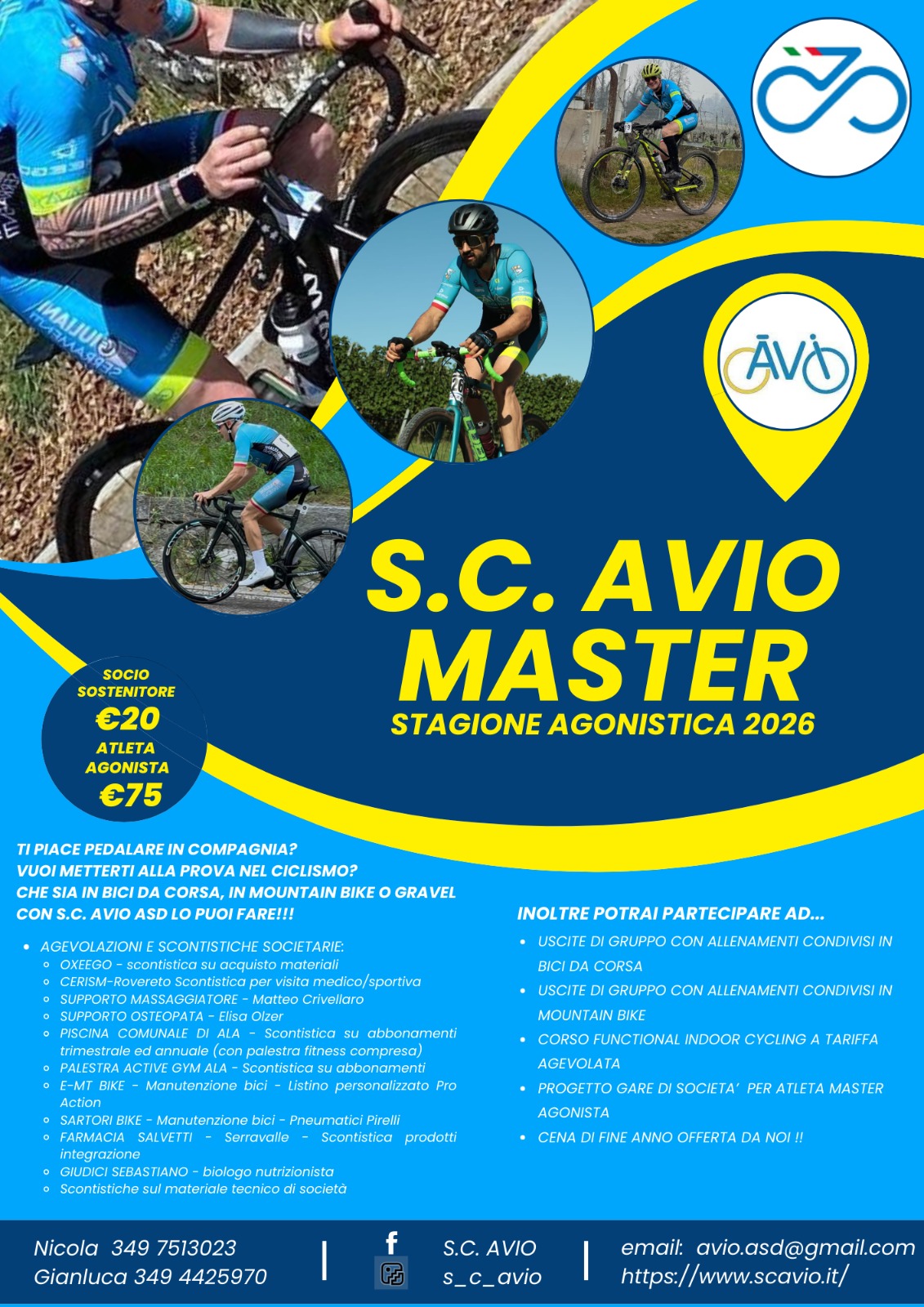 La Società Ciclistica AVIO ASD è un’associazione sportiva dilettantistica che si occupa di promuovere la pratica del ciclismo giovanile, amatoriale e cicloturistico, come attività salutare e aggregante. Dal 2018 S.C. AVIO ASD è anche AVIO TRIATHLON.